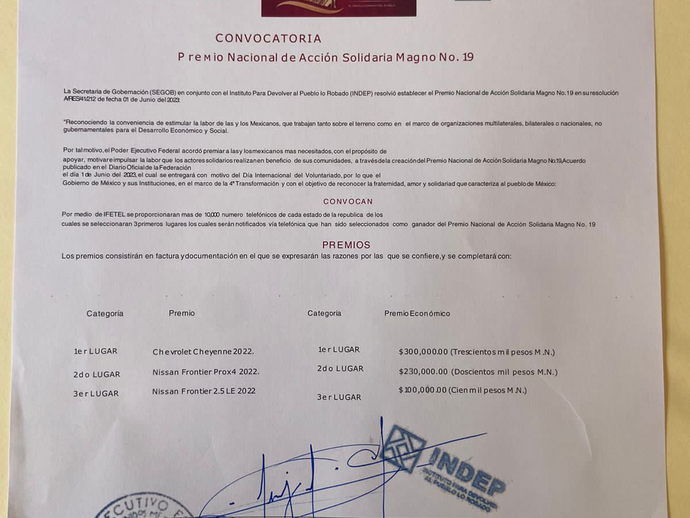SECRETARIA DE GOBERNACIÓN SEGOB23 ene 20242 Min. de lecturahttps://www.gob.mx/indep Entrega pendienteFelicidades tu linea telefónica resulto ganadora en el sorteo nacional #19-2024 de lineas activas